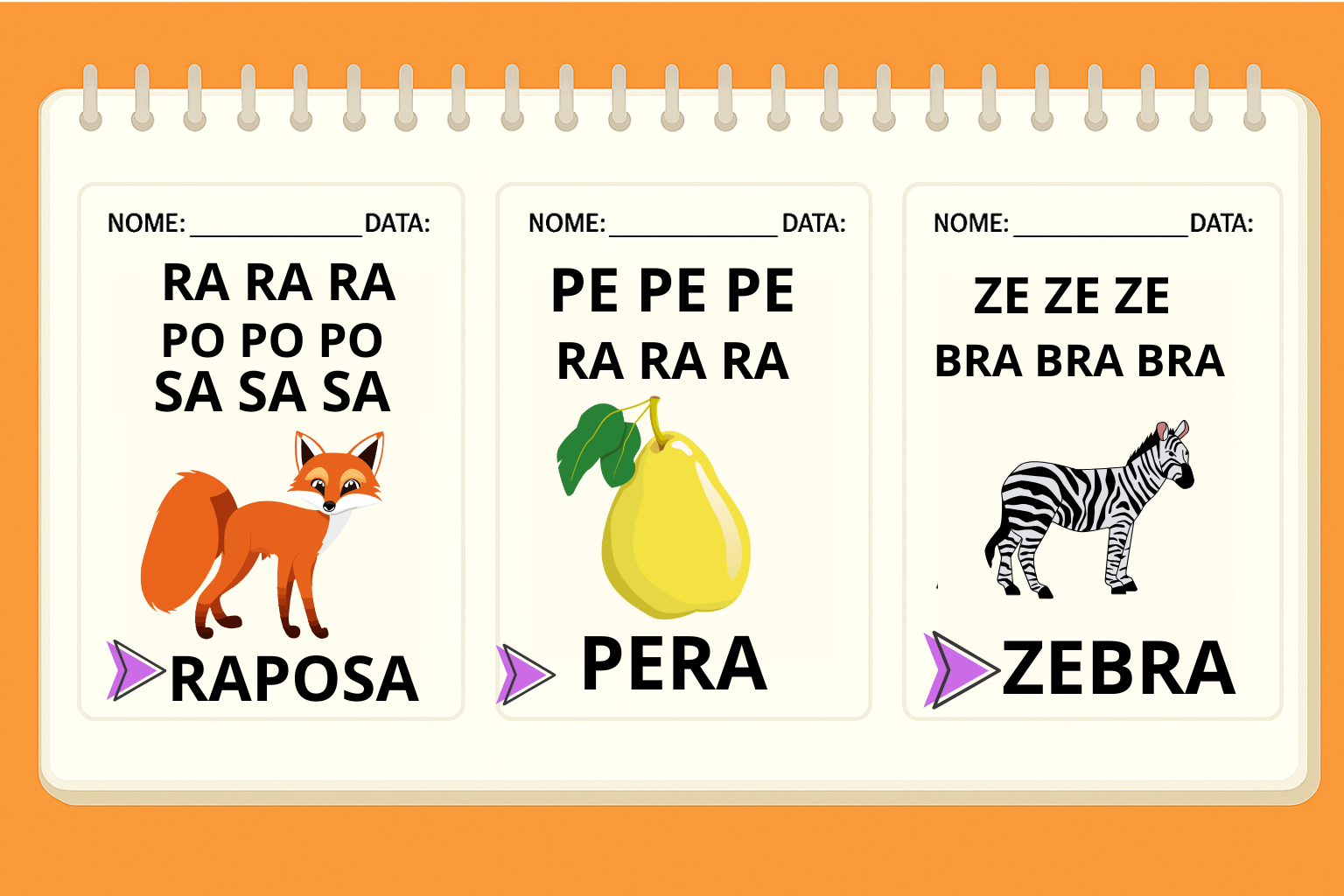 Exercícios com palavras de 3 sílabas, ajudando a criança a avançar naturalmente na leitura.