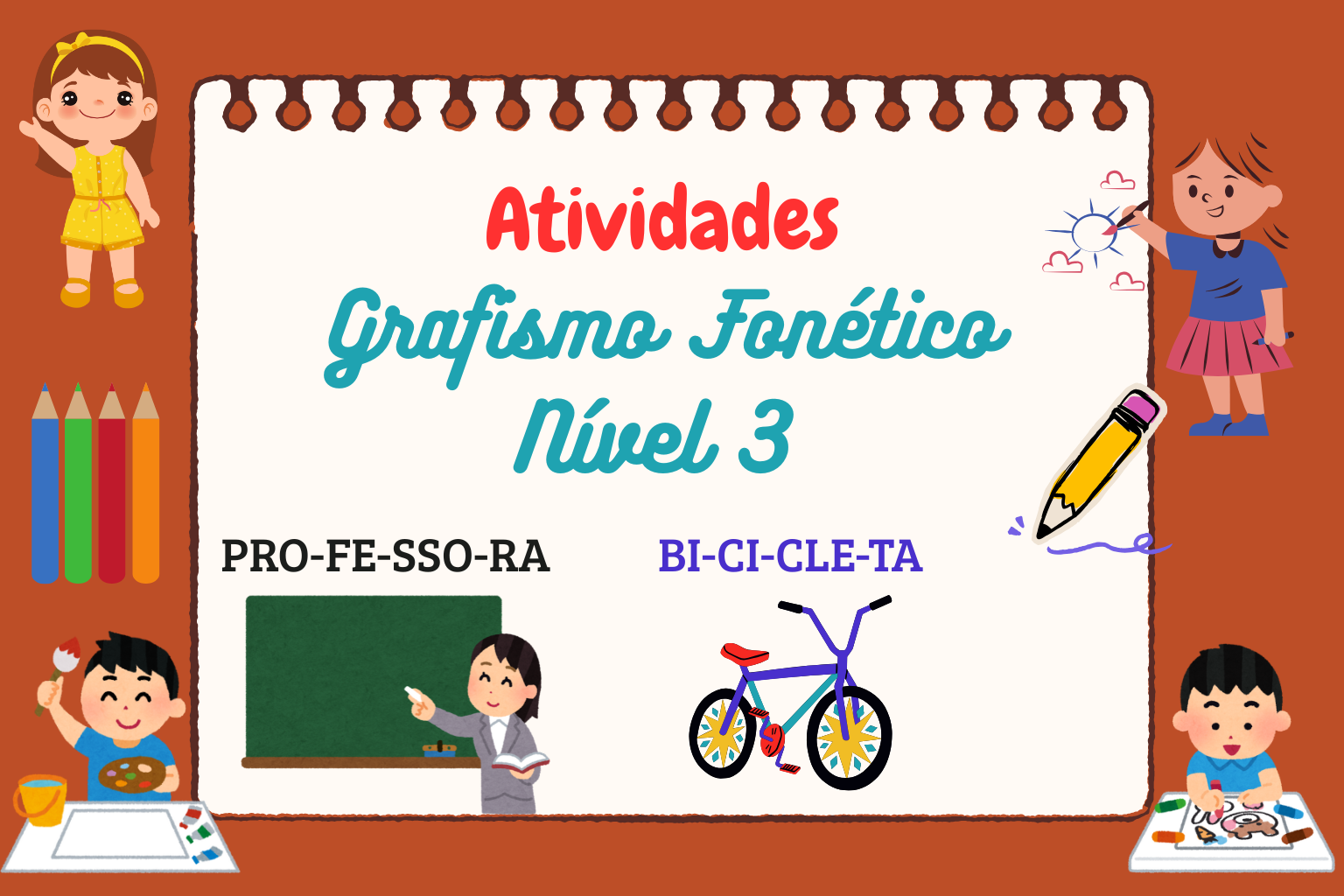 Nossas atividades de grafismo fonético são projetadas para crianças de diferentes faixas etárias, abrangendo desde a primeira infância até o ensino fundamental.